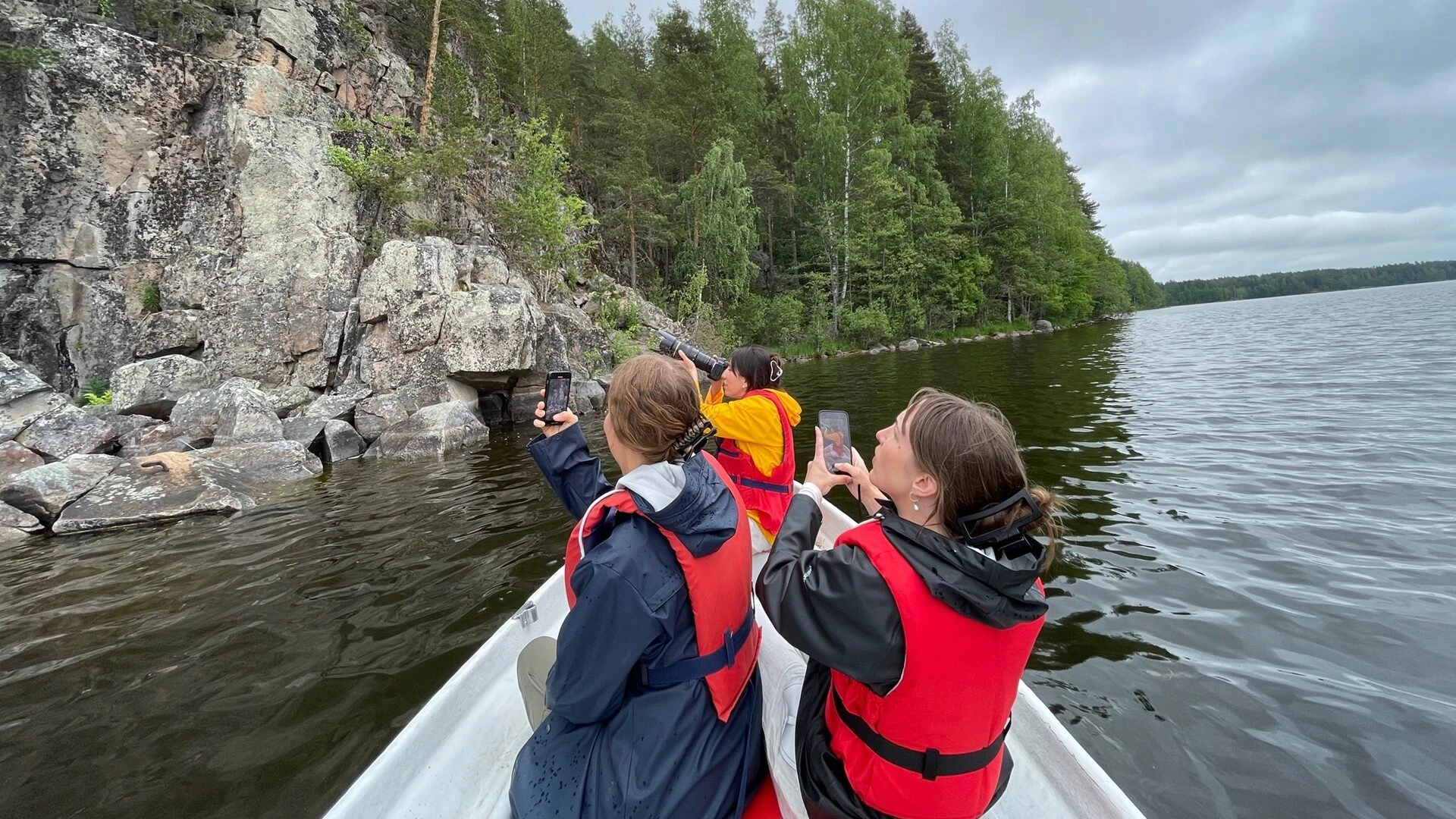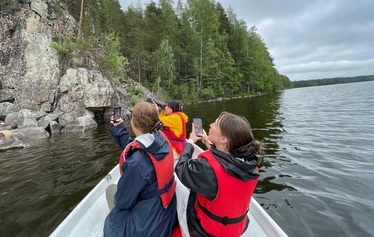 "Kolmen sukupolven porukkamme vietti ihanan kesäillan Saraakallioilla Katrin opastuksella soutuveneellä. Katri osasi hienosti huomioida eri ikäisten retkiläisten tarpeet. Pääsimme kaikki turvallisesti tutustumaan ainutlaatuisiin maalauksiin, joita bongasimmekin enemmän kuin osasimme odottaa!"